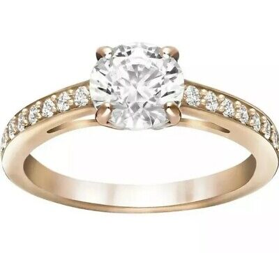 This rose gold plated Swarovski ring uk features a classic, elegant round-cut crystal in the centre with sparkling shoulders. An elegant addition to your jewellery box, the front side of the ring sparkles brilliantly, and the crystal contrasts perfectly with the rose gold finish.