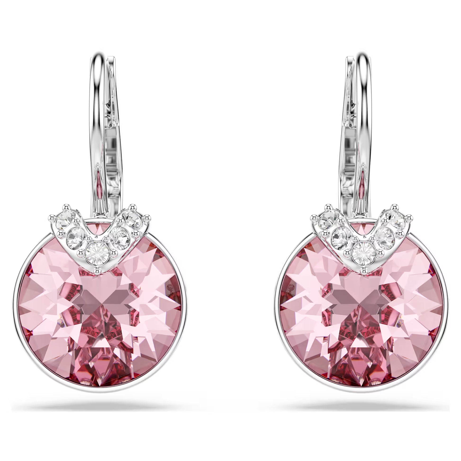 Bella V Drop Earrings, Round Cut, Pink, Rhodium Plated
