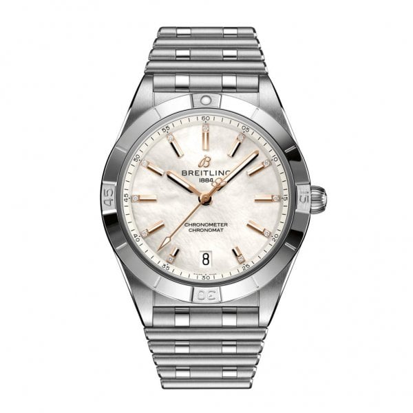 Stylish yet elegant, the modern-retro inspired Chronomat Automatic 36 is the versatile sporty and chic watch for any occasion. It is available in an array of metal cases, from cool stainless steel, to goes-with-everything bicolor, or even luxurious 18k red gold. Women craving extra sparkle will also be able to opt for diamond-set bezels, indices, and colorful dials. Featuring Breitlings iconic and comfortable Rouleaux bracelet with a butterfly clasp, the Chronomat Automatic 36 is powered by the Breitling Caliber 10, a COSC-certified chronometer.