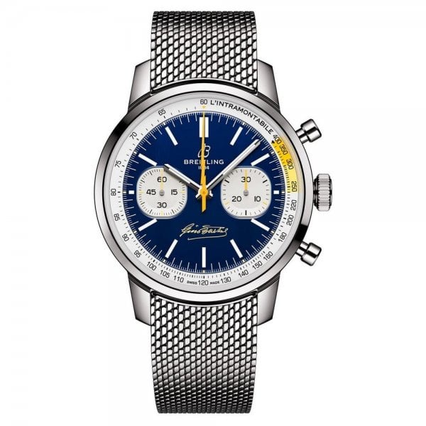Introduced in the transformative 1960s, Willy Breitling’s unconventional line of racing-inspired chronographs captured the era’s freewheeling vibe. Today, the new Top Time collection channels that adrenaline-fueled energy, blending modern-retro design with cutting-edge performance. Fausto Coppi and Gino Bartali weren’t just champions—they were symbols of sportsmanship. Both were Breitling ambassadors at a time when the brand was the official timekeeper for cycling’s greatest races and their love of the sport inspired millions. The Top Time B01 Gino Bartali features a blue dial with yellow accents, inspired by his memorable jersey. The chronograph features Bartali’s nickname on the tachymeter scale : “L’Intramontabile” (The Timeless), and its signature at six o’clock makes the connection even more personal. The 41 mm chronograph runs on Breitling’s Manufacture Caliber 01, offering COSC-certified precision and a 70-hour power reserve. A transparent caseback reveals the intricate movement, its outer ring engraved with “Gino Bartali Tribute” and “One of 750.” Unforgettable in its time, reimagined for ours, the Top Time B01 Bartali honors the resilience and friendships forged even in the fiercest competition.