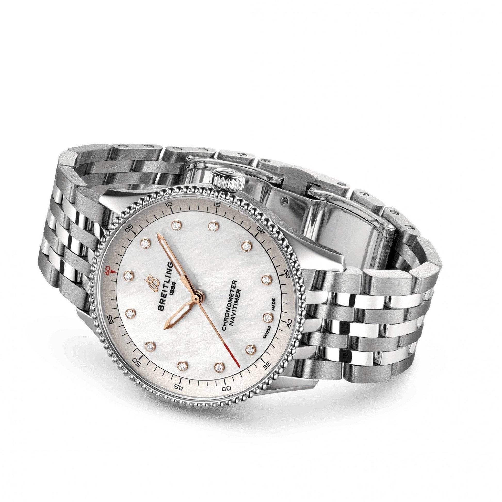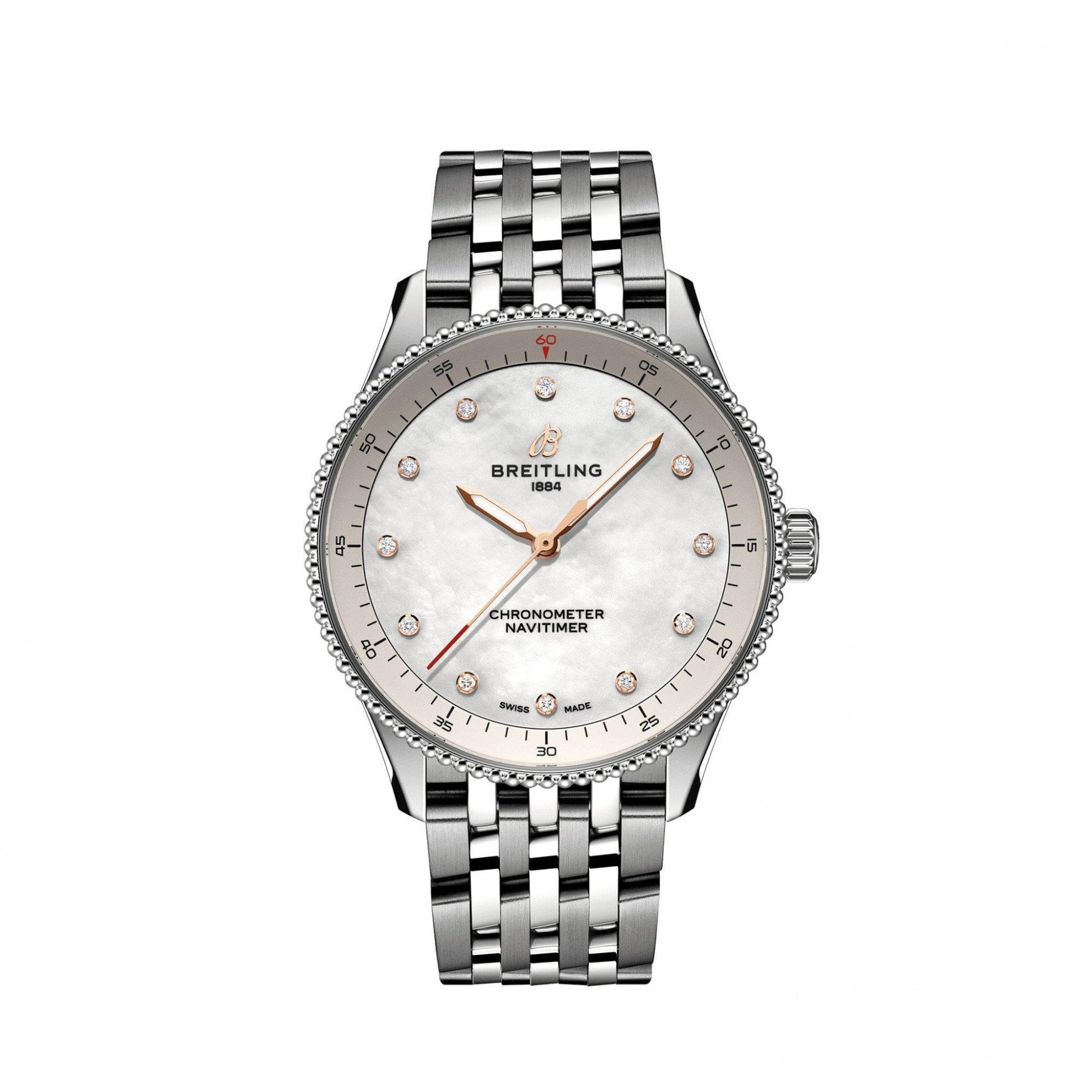 Breitlings iconfor the journey. The Navitimer is one of the most recognizable watches ever made. Its on collectors lists of the greatest watches of all time. What began in 1952 as a tool for pilots has gone on to mean something profound to every single person who has had this timepiece along on their personal journey. Our icon now comes in 36 and 32 mm sizes for women and men who love the look and feel of a smaller diameter watch. While the 36-mm Navitimer features the beaded bezel and iconic circular slide rule that gives the Navitimer its unmistakable appearance, the dazzling 32 mm variation forgoes the slide rule in favor of a simplified dial design suited to its slim diameter. But these showstoppers have so much more to offer than just their trim new sizes. Pops of pastel, mother of pearl, and traceable precious materials combine with subtle refinements to give the timepieces a jewelry-like appealadding a versatile elegance to the legendary navigational watch thats ready for wherever the journey takes you.