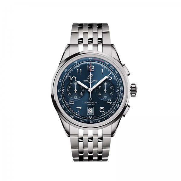 In the early 1940s, Willy Breitling was already dreaming of a time after the war, when utility would give way to unbridled optimism. He began designing a chronograph that would be functional but also undeniably elegant and infinitely wearablein his words, the unmistakable stamp of impeccable taste. He called this new line the Premier. To create its modern Premier, Breitling preserved distinctive vintage-Premier details, including the smooth fixed bezel, twin-register dial, streamlined rectangular pushers and applied Arabic numerals. The Premier B01 Chronograph 42 is available in an array of dial colors and case materials. It comes on a choice of classic alligator leather strap or sleek 7-row metal bracelet. Todays Premier also lives up to Willy Breitlings uncompromising technical standards with its exceptional self-winding movementthe COSC-certified Breitling Manufacture Caliber 01designed for maximum precision, reliability and functionality.