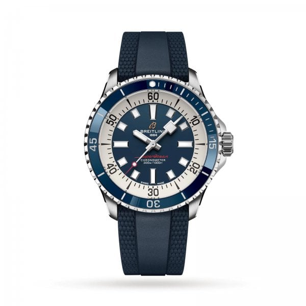 Performance and style for all your water-based pursuits. In the 1960s, the new sport of scuba diving was all the rage. For divers, timing was everything, and Breitling set out to give them the most clear-cut dive watch possible by eliminating any feature that didn’t support their lifesaving needs underwater. This pared-down watch was named the Slow Motion. What remained were clean lines, chunky luminescent indexes, squared-off hands and a high-contrast dial ring, all aimed at maximum legibility. Practical, yes. But what people really fell in love with was the look. The new Superocean retraces the Slow Motion's celebrated design codes, while adding modern features, like a ceramic-inlayed bezel and brightly colored dials. Broad hands and indexes in luminescent Super-LumiNova® allow for easy readability underwater. The watch is water resistant to 300 m (1000 ft), as well as being shock-, sand- and saltwater-resistant. The bronze version uses a special alloy that has excellent resistance to corrosion, yet will still develop a subtle patina over time that makes the watch even more unique. The two strap options (rubber and metal bracelet) have a folding clasp that allows for micro-adjustments of up to 15 mm for easy wear over rashies and wetsuits. Its scratch-proof ceramic inlayed bezel will never wear or fade. For safety, the bezel is uni-directional on most sizes and bi-directional with a patented lock on the 46 mm. Best of all, this is no longer strictly a dive watch—surf with it, swim with it, hit the beach bar with it, then wear it out to dinner. The Superocean perfectly balances the nostalgia of its heritage with a fresh new look.