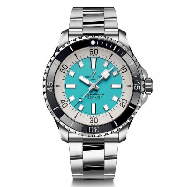 Performance and style for all your water-based pursuits. In the 1960s, the new sport of scuba diving was all the rage. For divers, timing was everything, and Breitling set out to give them the most clear-cut dive watch possible by eliminating any feature that didnt support their lifesaving needs underwater. This pared-down watch was named the Slow Motion. What remained were clean lines, chunky luminescent indexes, squared-off hands and a high-contrast dial ring, all aimed at maximum legibility. Practical, yes. But what people really fell in love with was the look. The new Superocean retraces the Slow Motion's celebrated design codes, while adding modern features, like a ceramic-inlayed bezel and brightly colored dials. Broad hands and indexes in luminescent Super-LumiNova allow for easy readability underwater. The watch is water resistant to 300 m (1000 ft), as well as being shock-, sand- and saltwater-resistant. The bronze version uses a special alloy that has excellent resistance to corrosion, yet will still develop a subtle patina over time that makes the watch even more unique. The two strap options (rubber and metal bracelet) have a folding clasp that allows for micro-adjustments of up to 15 mm for easy wear over rashies and wetsuits. Its scratch-proof ceramic inlayed bezel will never wear or fade. For safety, the bezel is uni-directional on most sizes and bi-directional with a patented lock on the 46 mm. Best of all, this is no longer strictly a dive watchsurf with it, swim with it, hit the beach bar with it, then wear it out to dinner. The Superocean perfectly balances the nostalgia of its heritage with a fresh new look.