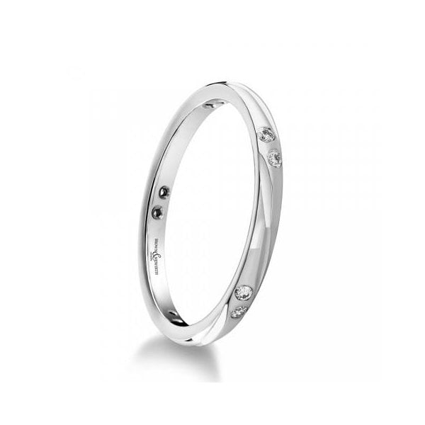 Handcrafted in 9ct white gold, the XD300 features a graceful sweeping court profile and is beautifully accentuated by 0.11 ct of round brilliant diamonds that wrap around the band.