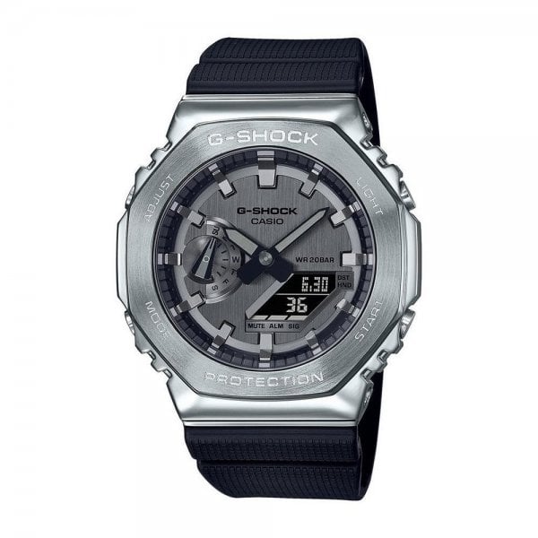 Building on the iconic 2100 octagonal shape is the new GM-2100 series, which are mid-sized G-SHOCKs with a simple yet bold design. Forged in stainless steel with rounded hairline finish, the strong bezel adds a sophisticated tone. The dial is treated with a vapour deposition finish for a meticulously detailed metallic look that suits a classic metal G-SHOCK timepiece. Still 200M water resistant with functions such as World Time, Stopwatch and a Timer.