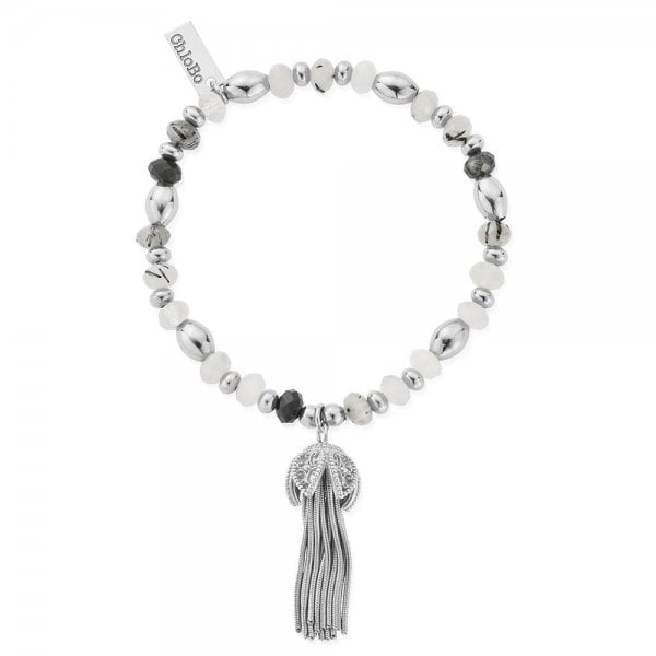Silver Tassel Of Joy Black Quartz Bracelet