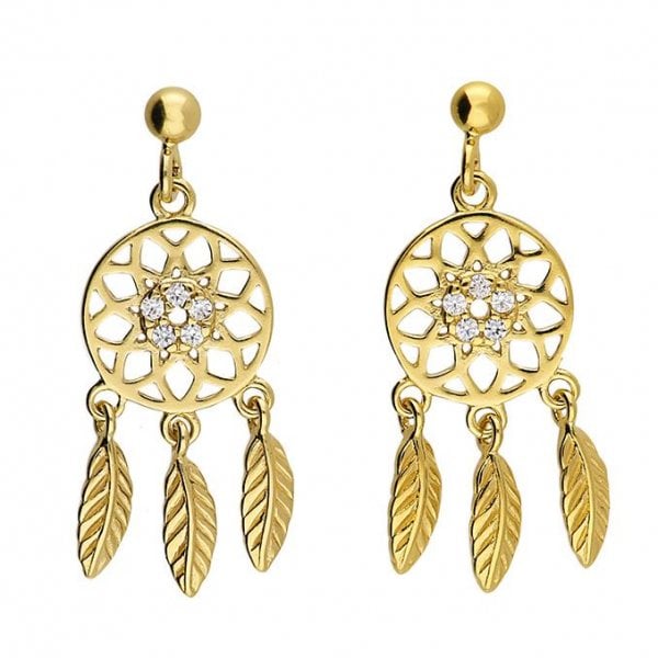 Yellow gold plated cubic zirconia dreamcatcher stud drop