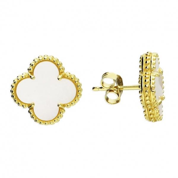 Yellow Gold Plated Earrings Quatrefoil Mop
