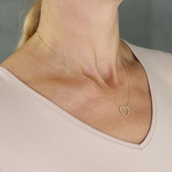Yellow gold plated 41-46cm extender. Delicate cubic zirconia rub over heart
