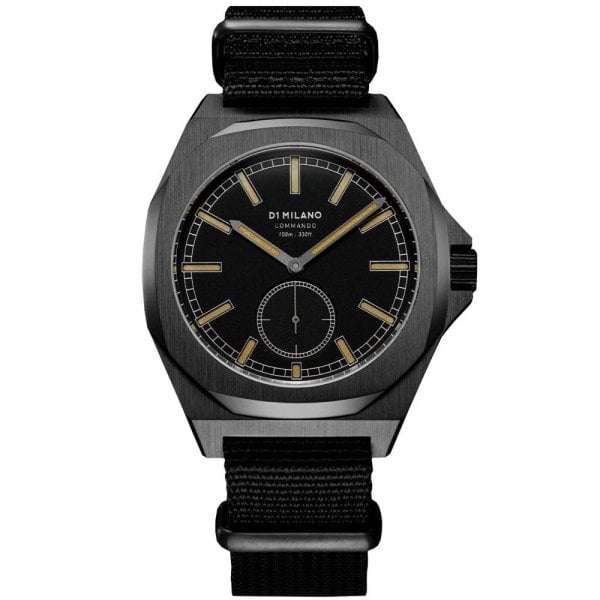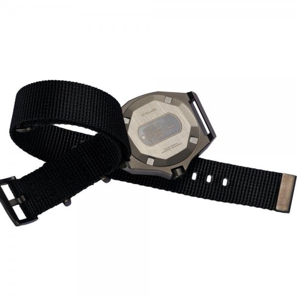 Tactical timepieces teaming utilitarian details. Arm yourself with a total black look from double-layered grain dial to NATO strap, completed by Old Radium LumiNova hands and indexes.