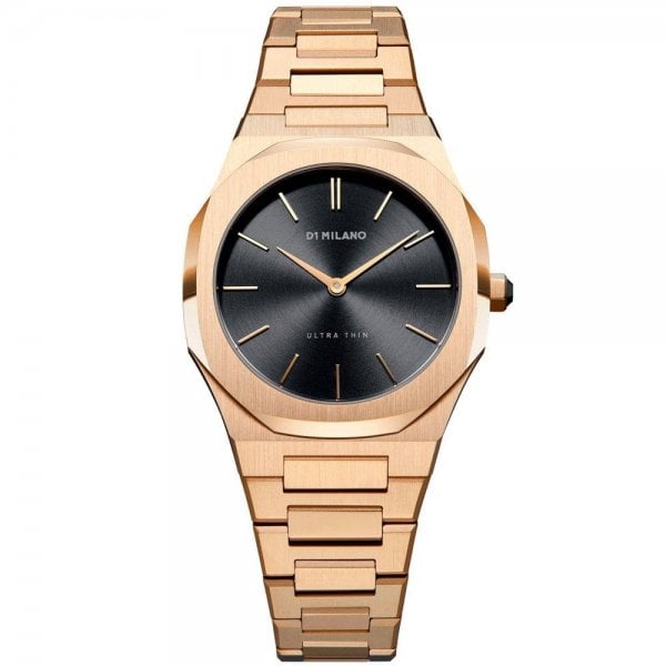 Smaller case, same attention to details. Designed with elegance in mind, our signature black dial in circular brushed finishing offers a classic gold stainless steel pairing.