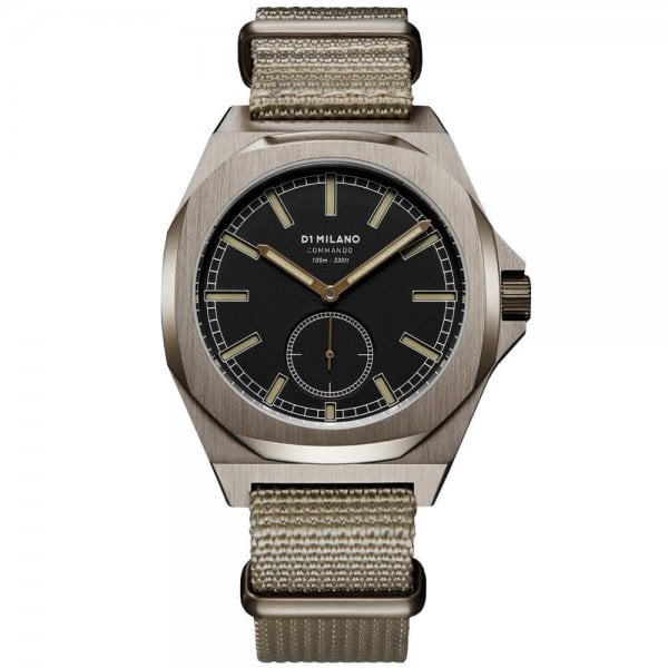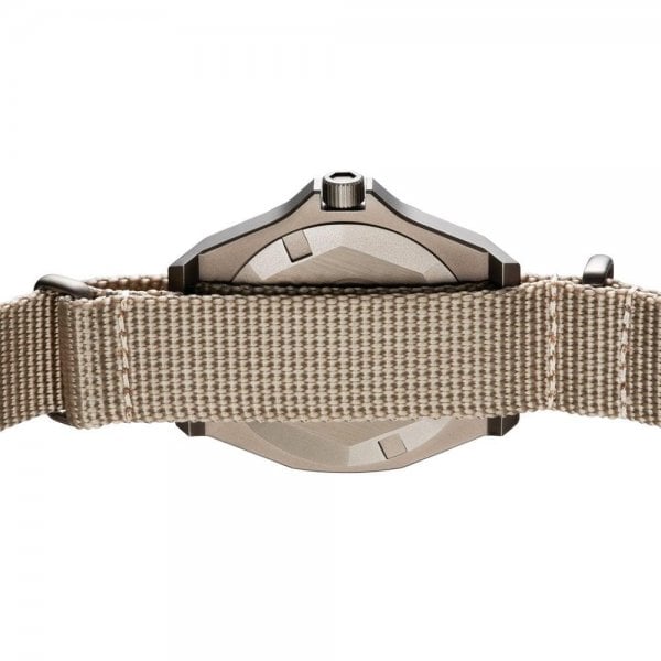 Gear up for adventures with a khaki and sand-coloured NATO strap combo, teaming a double-layered black grain dial and Old Radium LumiNova hands and indexes.