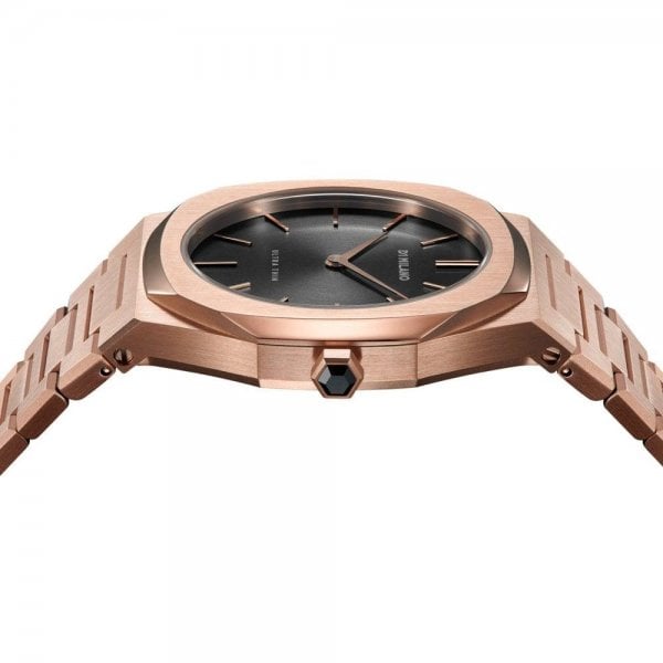 Smaller case, same attention to details. Designed with elegance in mind, our signature black dial in circular brushed finishing offers a classic rose gold stainless steel pairing.