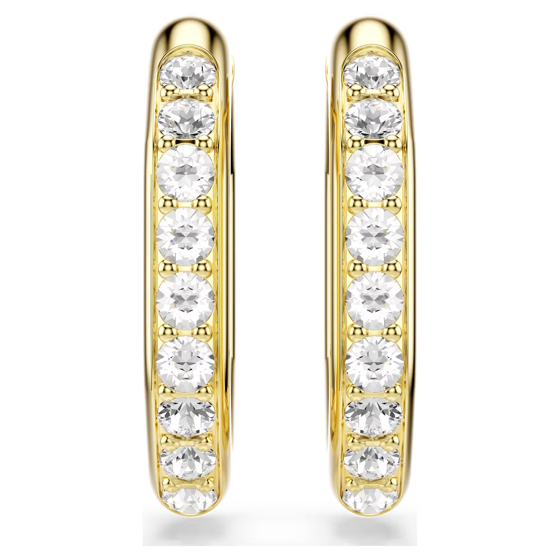 Dextera Hoop Earrings, Octagon Shape, Round Cut, Medium, White, Gold Tone Plated