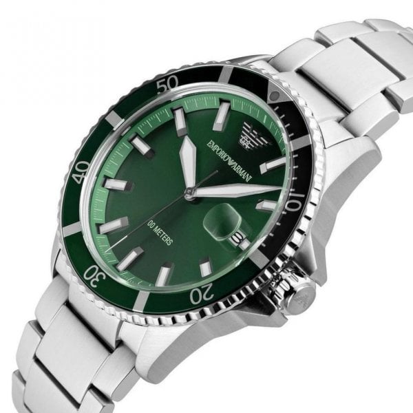 With an on-trend green dial and chunky bezel, this Emporio Armani Men's Watch is the perfect timepiece for the stylish gent.