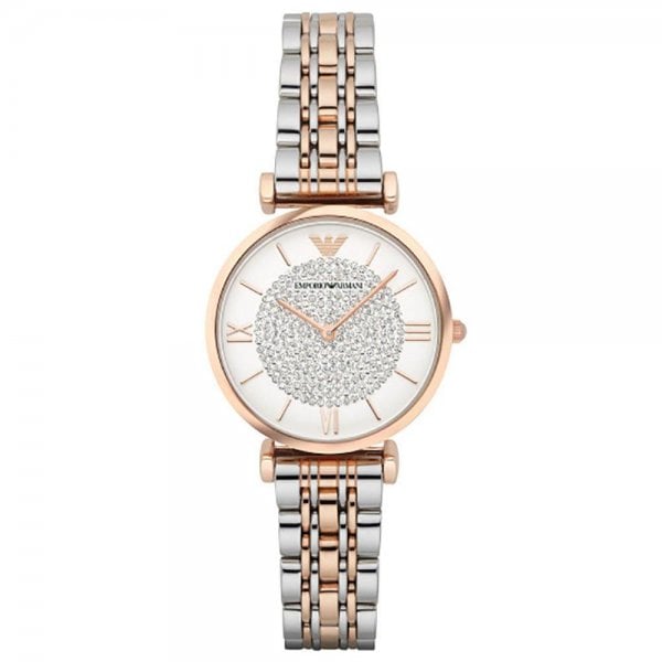 Give every look the designer edge with this ultra-stylish and contemporary Emporio Armani two-colour crystal ladies watch.