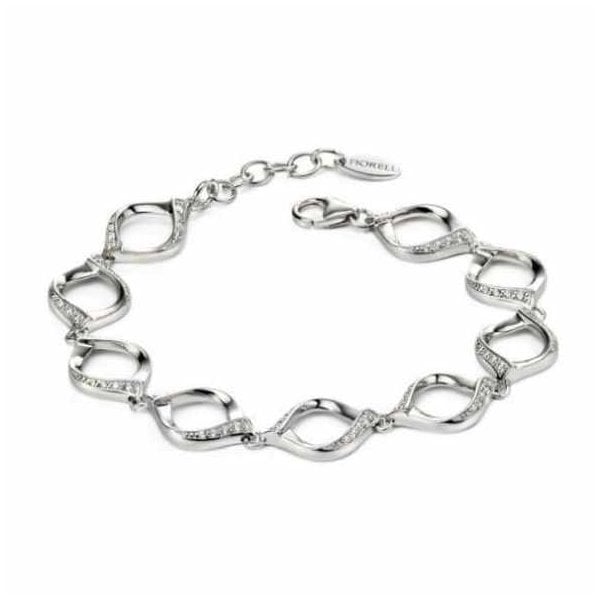 Fiorelli Silver bracelet with 9 x twisted diamond shape links with grain set cubic zirconia either side of each link comes with a 1 " extender on the end of bracelet