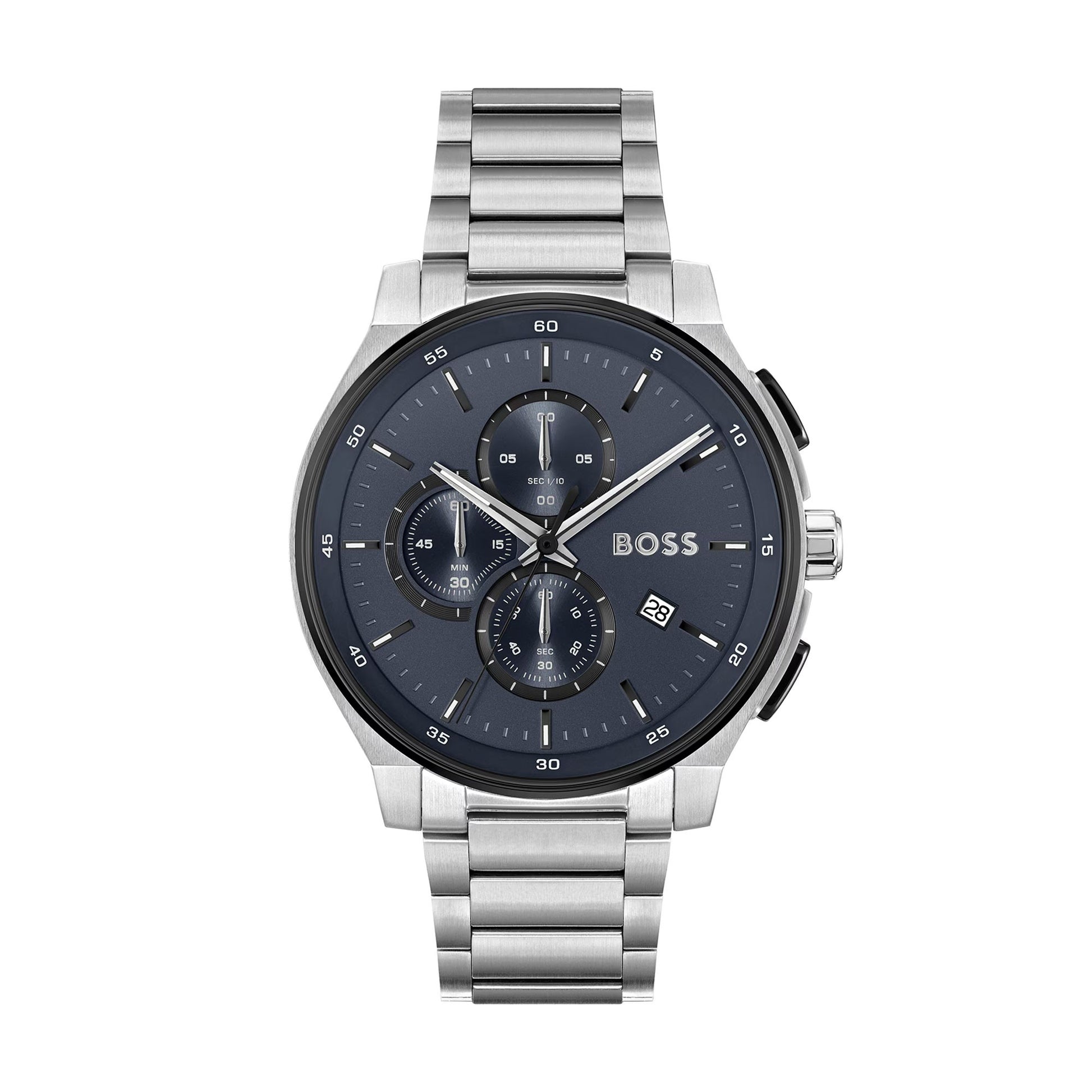 Housed in a robust 44mm round stainless steel case, the BOSS Peak 2.0 exudes strength and refinement. Its silver-tone finish ensures timeless versatility, pairing seamlessly with both formal and casual looks. The stainless steel bracelet enhances the watch’s luxurious appeal, while the folding clasp offers a secure and comfortable fit.