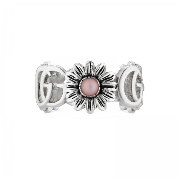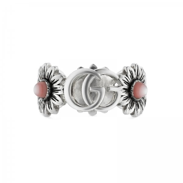 Gg Marmont Sterling Silver Floral Ring Size 12