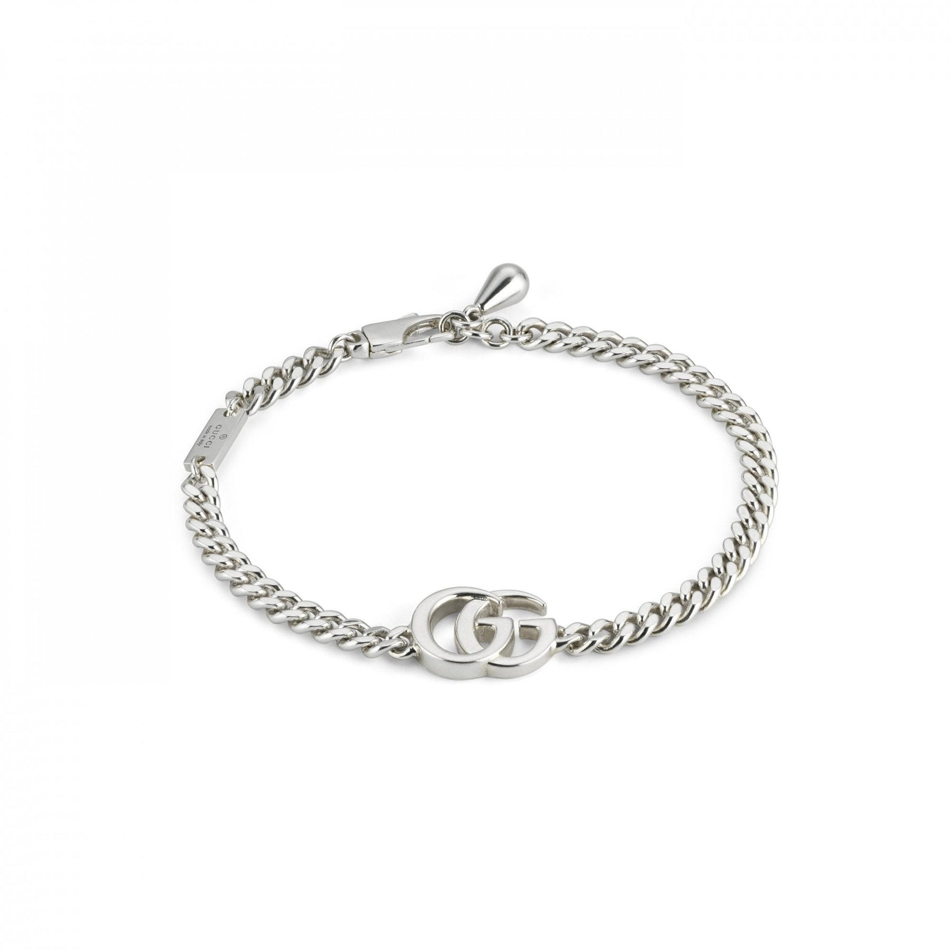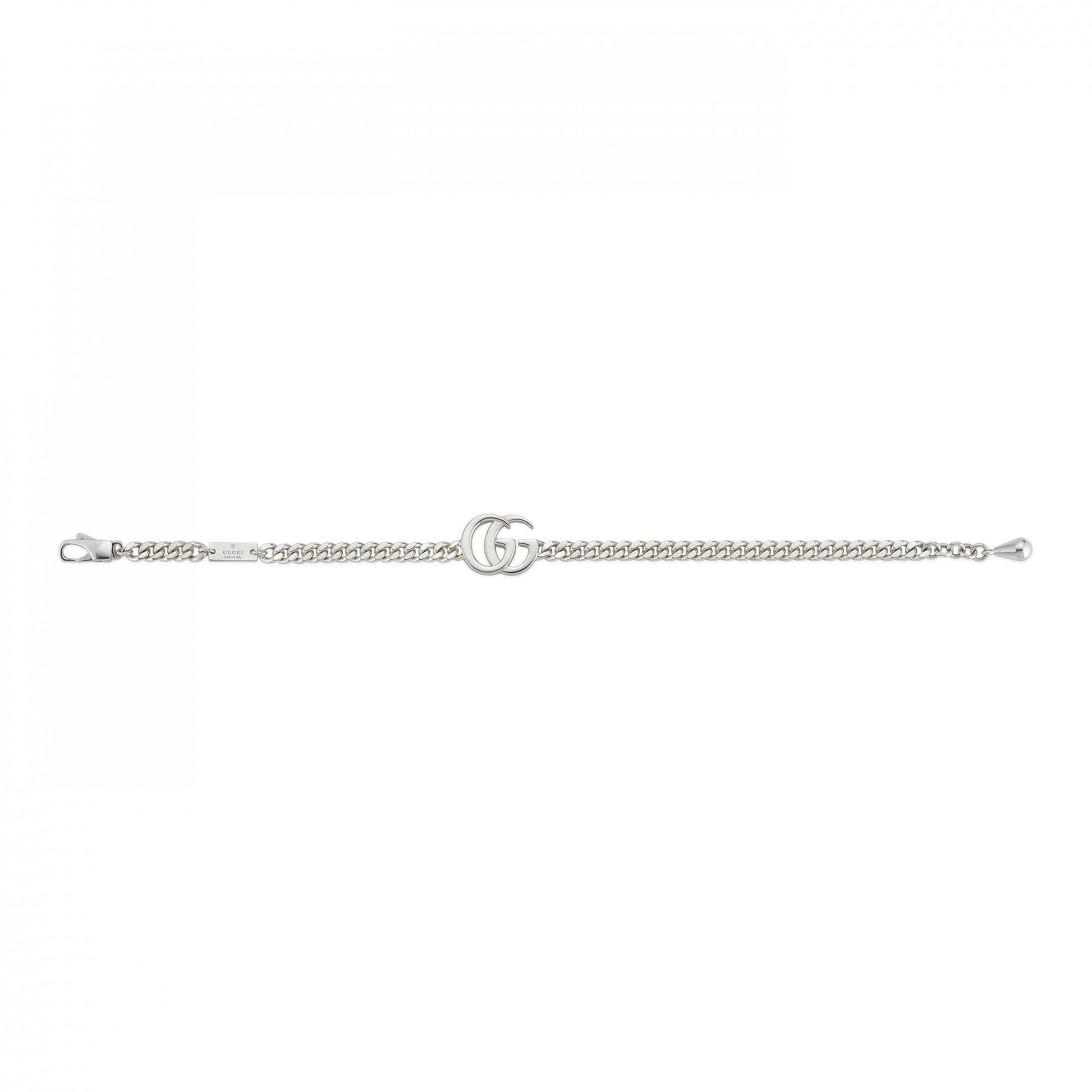 Embrace timeless elegance with this sterling silver bracelet from Gucci’s GG Marmont collection. Crafted in 925 silver, it features a sleek gourmete chain adorned with the iconic Double G charm, symbolising the brand's rich heritage. Whether dressing up for a special occasion or adding a touch of luxury to your everyday ensemble, this bracelet offers a refined and contemporary addition to any jewellery collection.