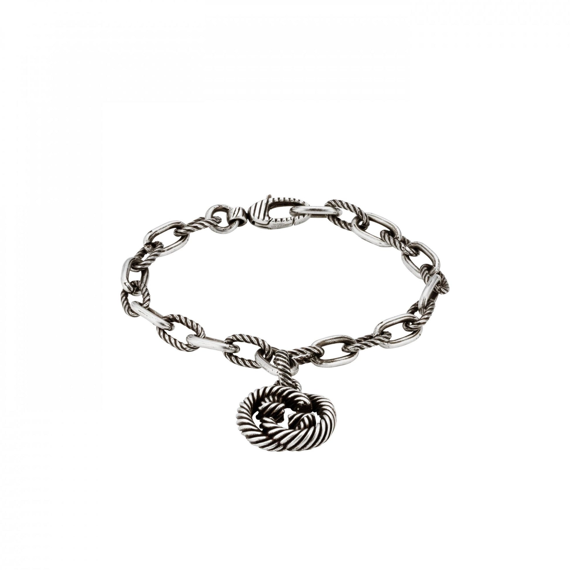 Gucci Interlocking G Bracelet with GG Pendant Aged Silver