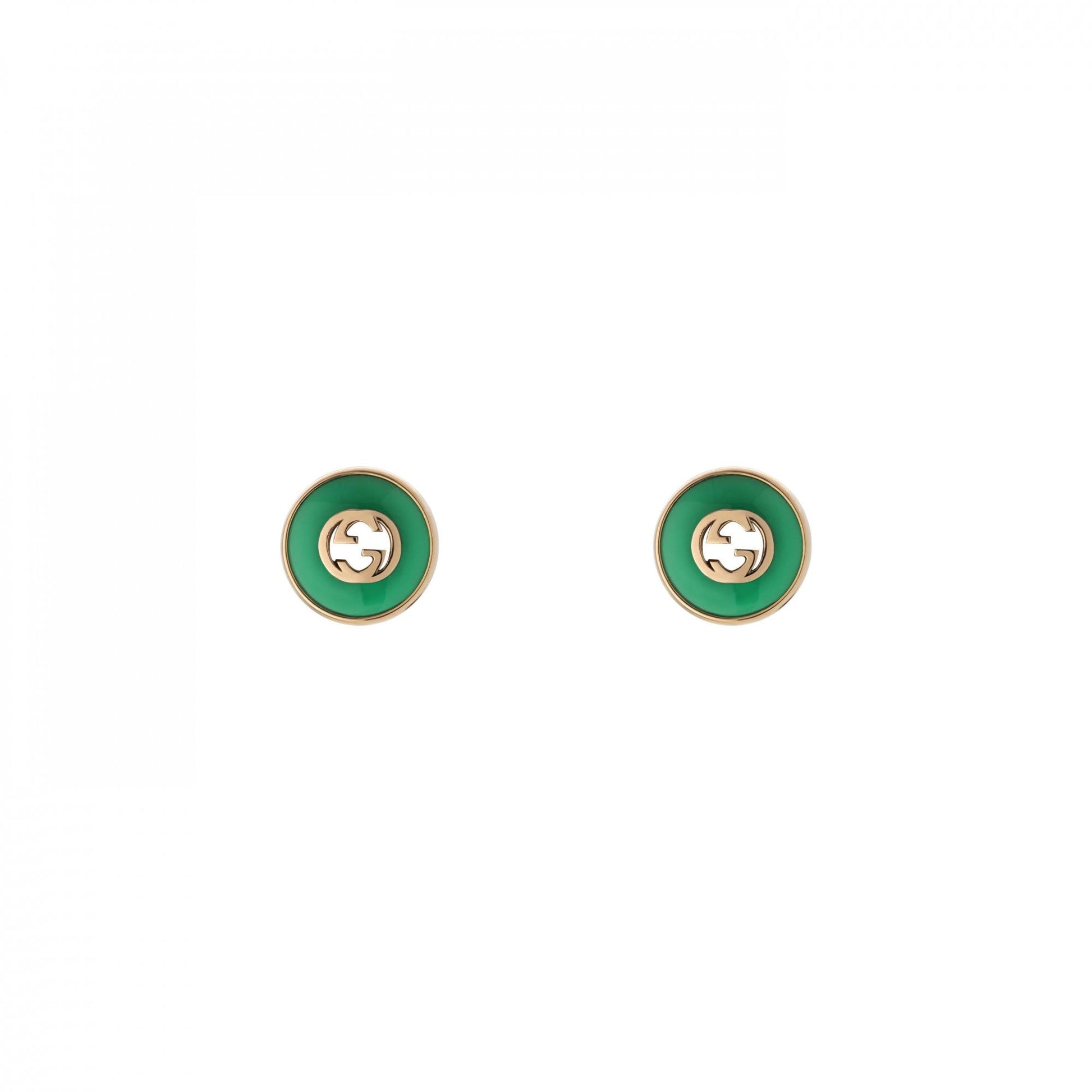 Gucci Interlocking Rose Gold Green Agate Stud Earrings