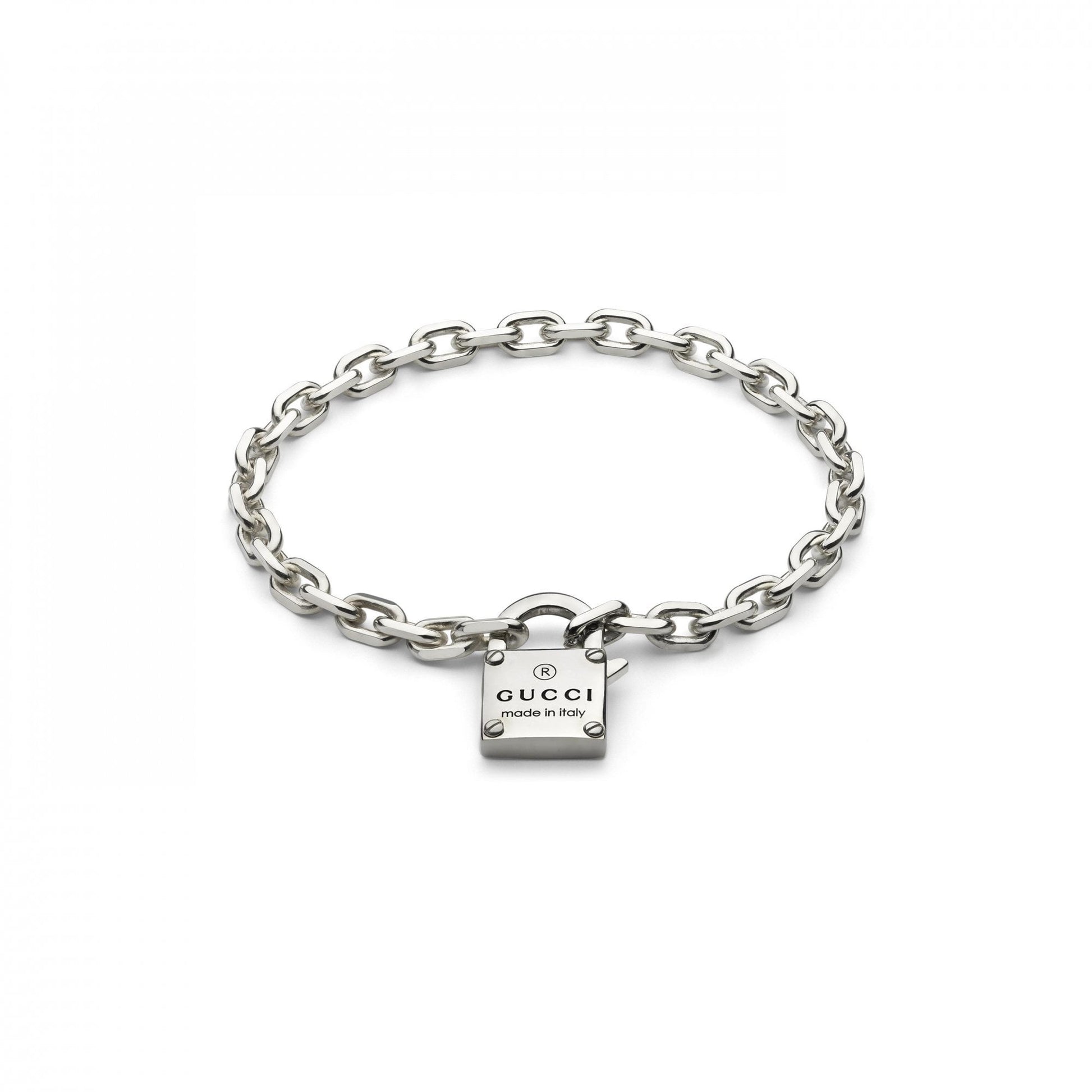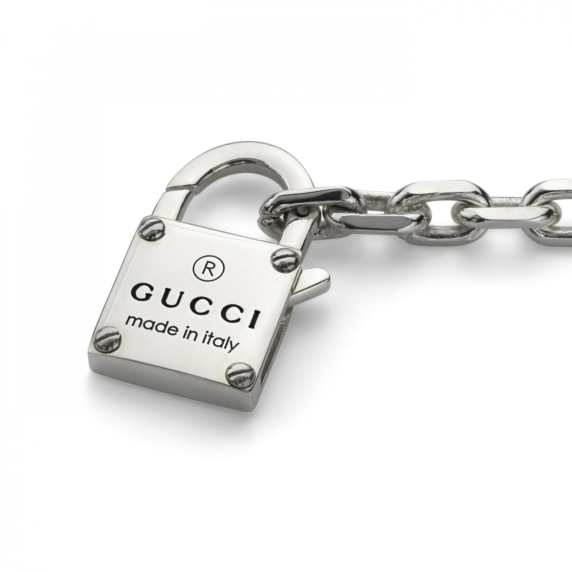 Bracelet in sterling silver with padlock motif and Gucci trademark detail