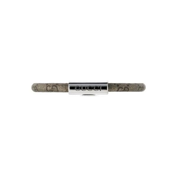 Bracelet in beige/ebony leather strap and sterling silver closure