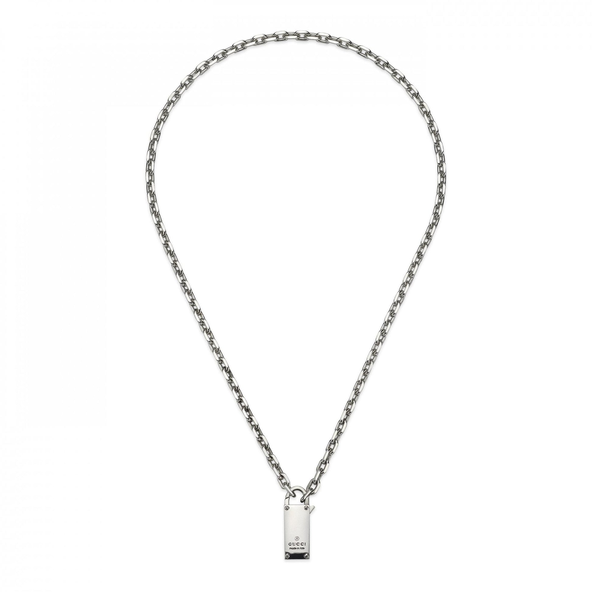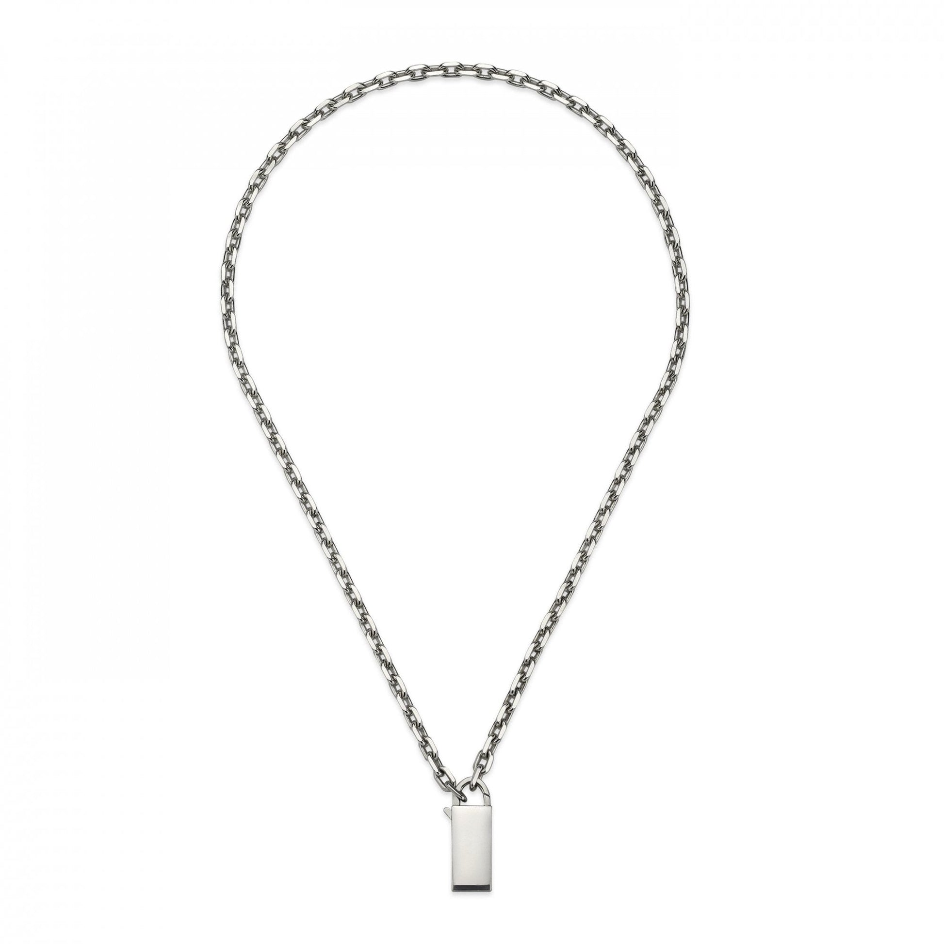 Necklace in sterling silver with padlock motif and Gucci trademark detail