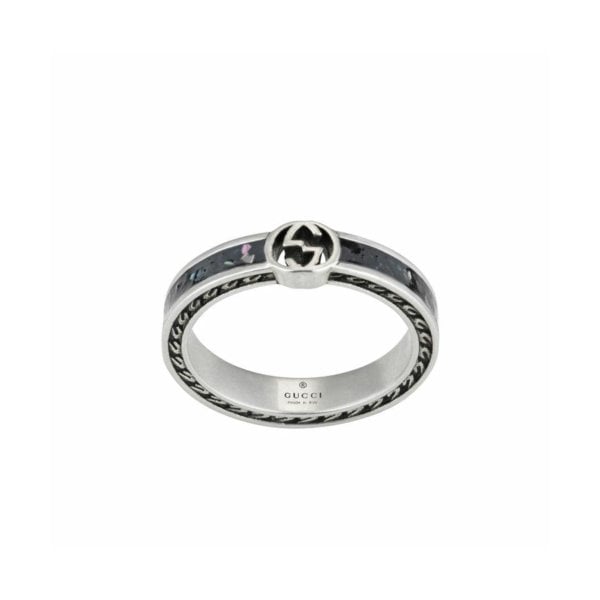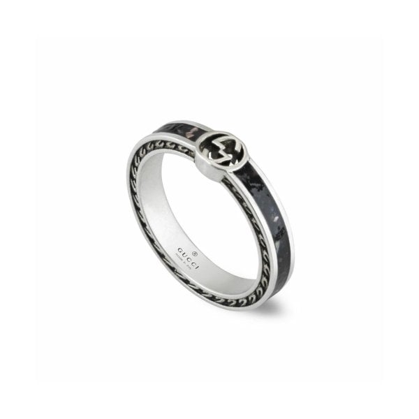 Silver & Black Enamel Interlocking G 3.5mm Ring