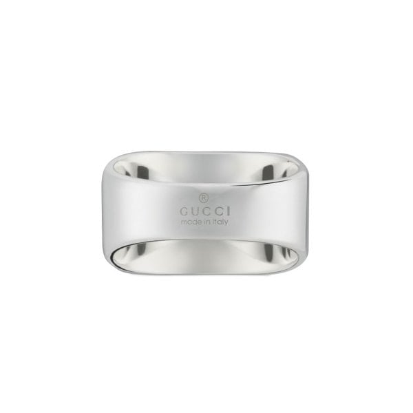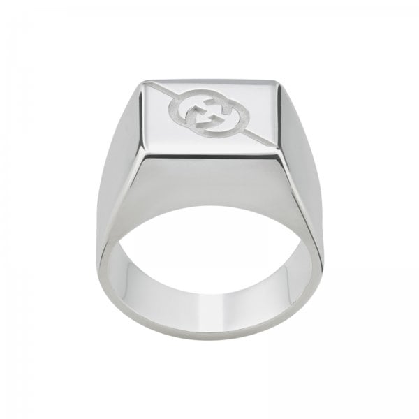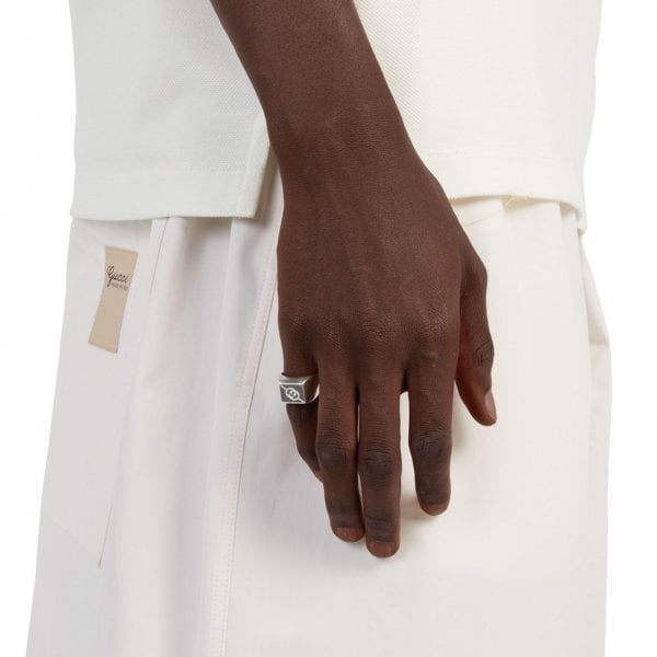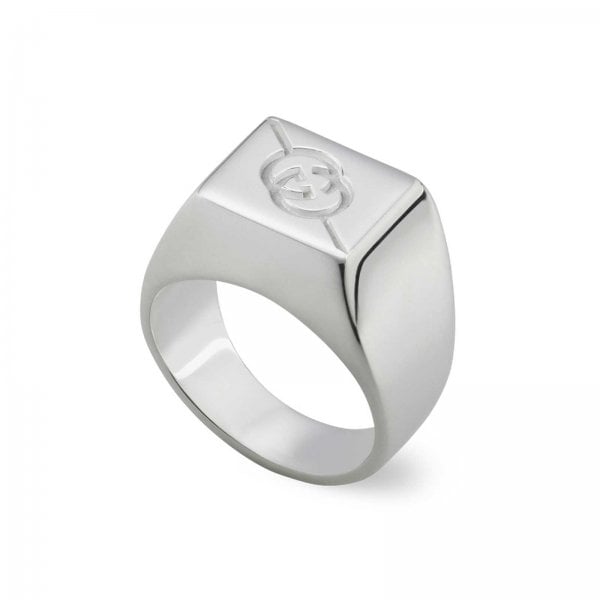 Tag Sterling Silver Square With Interlocking G Logo Signet Ring. This stylish dress ring from Gucci has been crafted from sterling silver for an opulent finish to any outfit. Its simple yet bold style is perfect for combining with other statement pieces from the prestigious Tag collection incorporating the Interlocking G logo This beautiful silver dress ring from Gucci is a stylish square design for a modern look. Gucci rings are versatile accessories that add a dramatic and playful edge to everyday attire. Making the perfect gift idea for any keen Gucci jewellery enthusiast, this ring will team effortlessly with other creations for a stacked or layered finish but will look equally as stylish when worn alone as a statement piece. The Tag jewellery design also comes competed inside a genuine Gucci presentation box for gifting to a loved one.