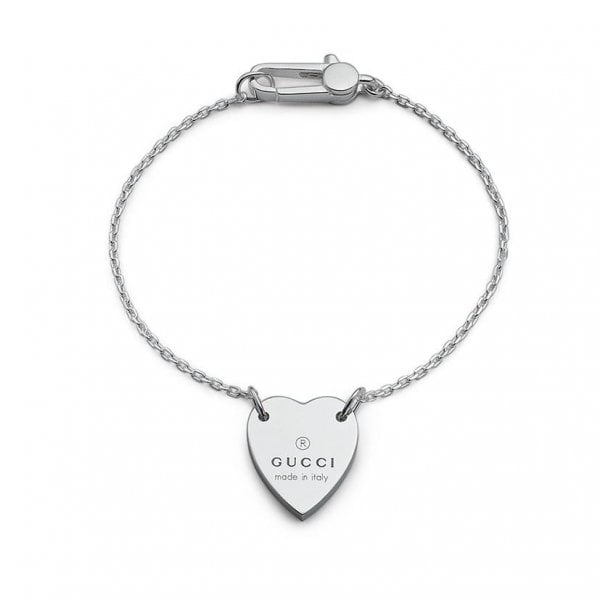 Discover timeless elegance fused with romantic flair in the Gucci Trademark Heart Bracelet. Crafted from 925 sterling silver and made in Italy, this piece captures GUCCI’s heritage of sophisticated design with a modern heart motif engraved with the iconic GUCCI trademark. It's delicate yet durable chain, secured by a lobster clasp, ensures comfortable wear while letting the heart pendant sparkle as the centrepiece. It’s the perfect accessory for day-to-night wear—beautiful on its own or layered alongside other favourites. Whether as a gift or a personal indulgence, this bracelet offers a luxurious way to hold close those you love, while wearing undeniable style.