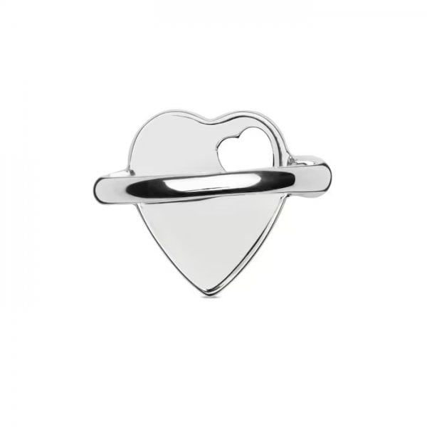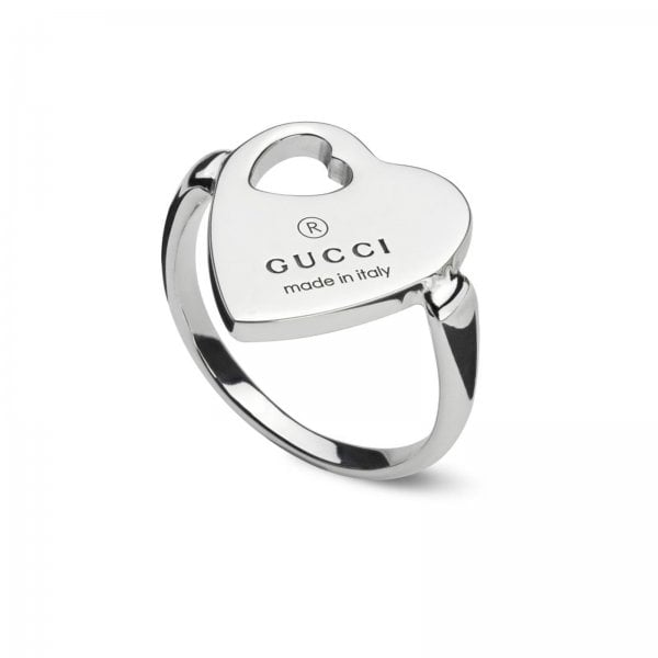 The Gucci Trademark line combines motifs and hexagonal charms with the name of the House. From the cut-out heart to the padlock charm, playful symbols continue to distinguish a selection of rings, necklaces, bracelets and earrings for Pre-Fall 2024. This ring features the signature heart with a cut-out heart detail. Heart with cut-out heart: W14mm x H17mm.