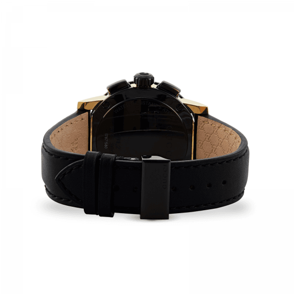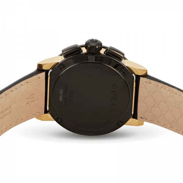 Gucci G-Chrono YA101203 is a super special Gents watch. Material of the case is PVD Gold plated and the Black dial gives the watch that unique look. The features of the watch include (among others) a chronograph. In regards to the water resistance, the watch has got a resistancy up to 50 metres. It means it can be submerged in water for periods, so can be used for swimming and fishing. It is not reccomended for high impact water sports. We ship it with an original box and a guarantee from the manufacturer.