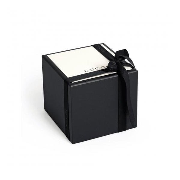 Presented on a black leather strap embossed with the double G logo