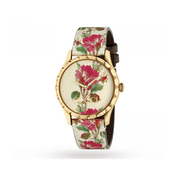 Gucci G-Timeless YA1264084 is an amazing and eye-catching Ladies watch from G-Timeless collection. Case is made out of PVD Gold plated while the dial colour is Cream. 50 metres water resistancy will protect the watch and allows it to be submerged in water for periods, so can be used for swimming and fishing. It is not reccomended for high impact water sports.