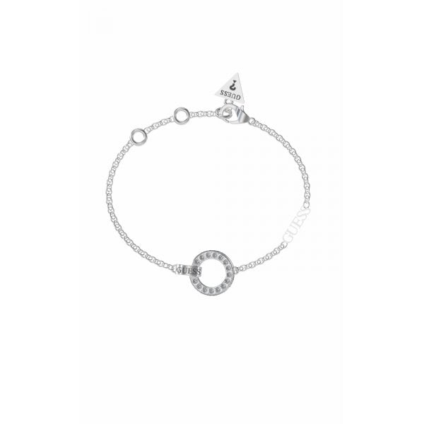 Women's bracelet GUESS STEEL CIRCLE LIGHTS JUBB03162JWRHL silver color with element with transparent zircon stones & logo (21cm).