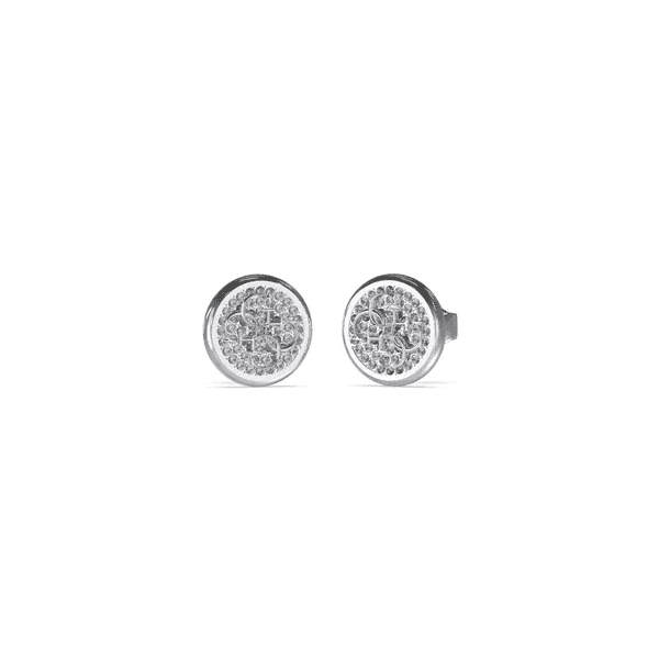 Shine a little brighter with these elegant 12 mm GUESS coin studs — part of the Dreaming Guess collection. Crafted in rhodium‑plated stainless steel, each earring features the iconic “4G” logo set against a shimmering pave of clear crystals that catch the light from every angle. The sleek coin silhouette and polished finish strike the perfect balance between everyday wear and special‑occasion flair. Lightweight and secured with a classic butterfly back, they’re gift‑ready and arrive in GUESS’s signature packaging.