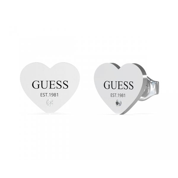 Add a touch of romance to your look with these charming 11 mm heart‑shaped stud earrings from GUESS’s “Studs Party” collection. Crafted from high‑quality stainless steel with a polished silver finish, each earring features a heart motif adorned with shimmering cubic zirconia crystals. The secure post and butterfly back ensure comfort and ease of wear. These earrings make a perfect gift for someone special or a delightful treat for yourself. Packaged in the original GUESS gift box, they arrive ready to dazzle.
