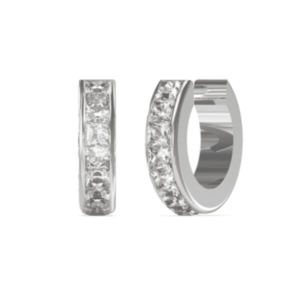 Light up your look with these chic 11 mm silver huggie hoops from GUESS. Crafted from stainless steel and plated for a high‑shine finish, they feature brilliant clear crystals adorning the front for elegant sparkle. The hinged (huggie) design ensures a snug, comfortable fit — perfect for all‑day wear whether you’re elevating a casual outfit or adding the finishing touch to your evening ensemble. Packaged in the signature GUESS jewellery box, they make a stylish gift or a polished addition to any jewellery collection.