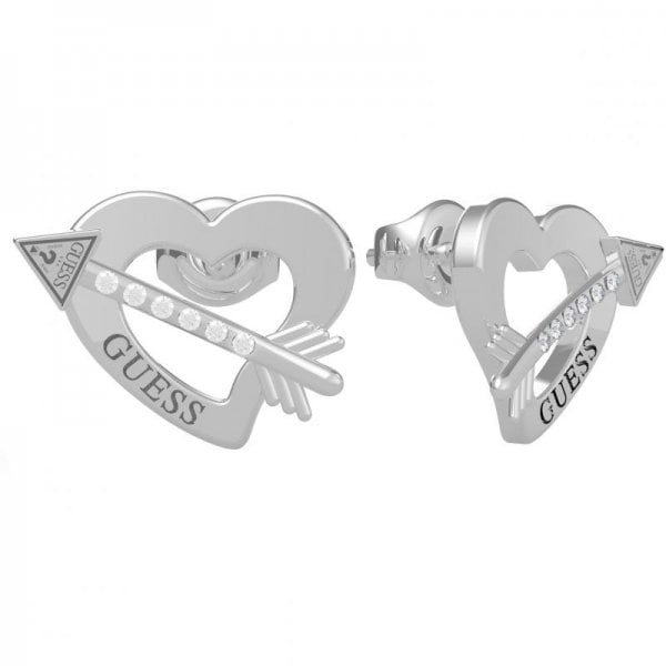 GUESS Women's Silver Tone Across My Heart Stud Earrings