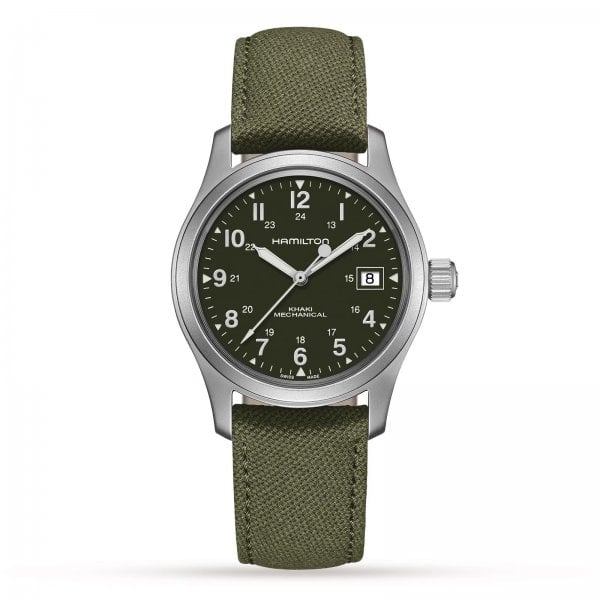 This is simplicity at its best. The Khaki Field Officer Handwinding offers basic functions and components for the no-nonsense, rugged watch wearer. Available with a choice of leather or canvas strap it is a timepiece not to be overlooked.