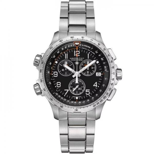 Crosswind calculator, chronograph and now a second time zone: It takes a super sized 46mm stainless steel case to contain all the aviaton features the Hamilton designers have packed into this latest addition to the Khaki X-Wind collection. Adventure meets accuracy and makes a lasting impression, whether you're the captain of the craft or on board as a passenger.
