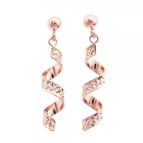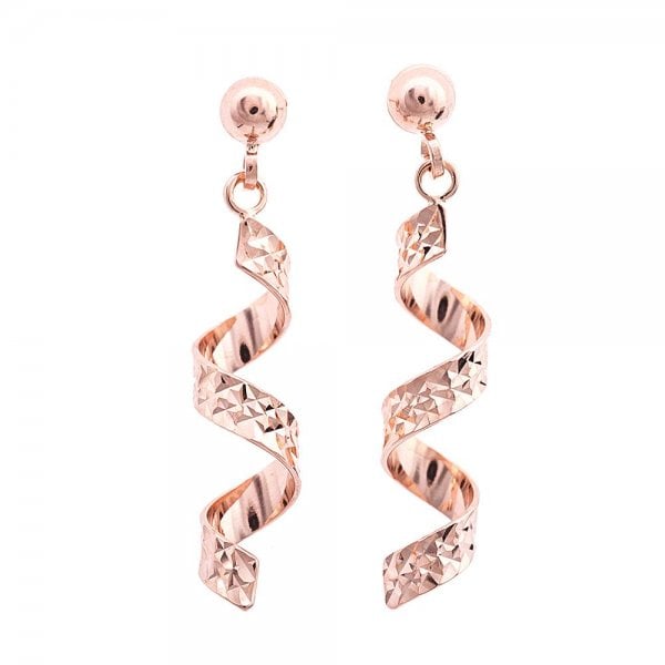9ct R/g Dia Cut Twisted Spiral Dropper