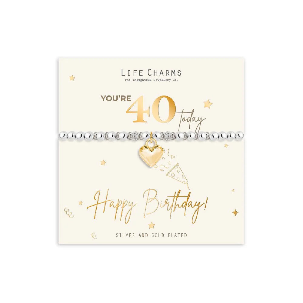 Celebrate a milestone birthday with the Happy 40th Birthday Bracelet. This elegant Life Charms bracelet is the perfect way to mark this special occasion.