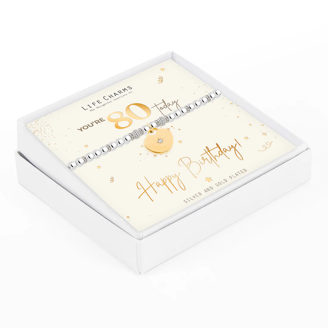 Beautiful 80th birthday silver plated bracelet with gold crown charm.