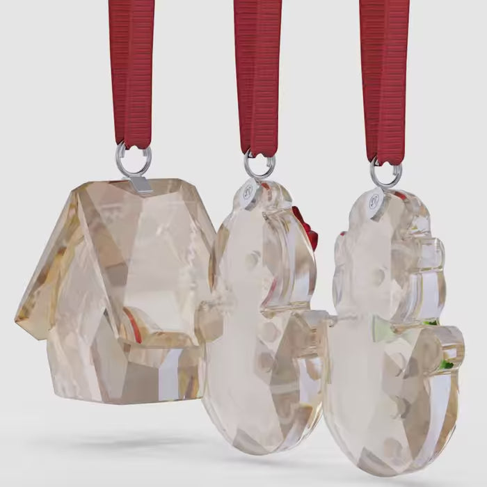 Evoking sweet memories of family celebrations, this gingerbread ornament set makes a perfect gift for a housewarming or for someone who simply adores the holidays. Suspended from red grosgrain ribbons, the three designs include a loving couple and their gingerbread cottage, crafted with Swarovski’s Golden Shadow effect. In total, the set reveals 361 light-catching facets, with detailing added in white print and crystals of multiple colours. This set is delivered inside a special presentation box, ensuring it can remain a treasured keepsake for years to come. Decoration object. Not a toy. Not suitable for children under 15.