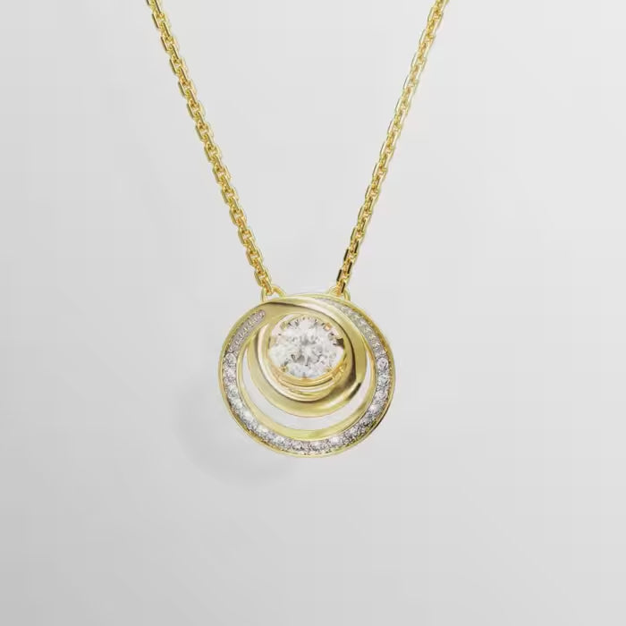 Blurring the line between classic and contemporary styles, this Hyperbola necklace delivers a unique jewellery silhouette. The circular design is gold-tone plated and features a central dancing stone surrounded by a frame of crystals in varying sizes. Wear it with matching earrings or a ring to emphasise the hypnotic look.