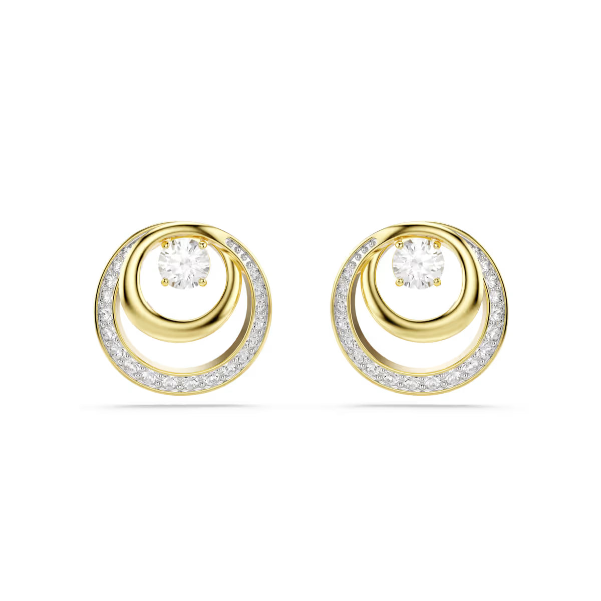 Hyperbola Stud Earrings, Round Cut, White, Gold Tone Plated